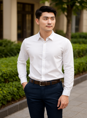 Đây là lựa chọn kinh điển nhưng chưa bao giờ lỗi mốt. Một chiếc quần tây slim-fit kết hợp với áo sơ mi trắng hoặc pastel sẽ mang lại vẻ ngoài chỉn chu, lịch sự khi đi chúc Tết họ hàng. Nếu muốn bớt cứng nhắc, bạn có thể chọn sơ mi họa tiết nhỏ hoặc thêm thắt lưng da để tạo điểm nhấn. Đây chính là tip phối đồ ngày Tết vừa trang nhã vừa dễ áp dụng cho mọi chàng trai.