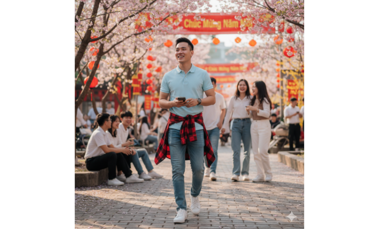 Với những buổi gặp gỡ bạn bè hay dạo phố ngày xuân, combo áo polo hoặc áo thun basic cùng quần jeans xanh/đen là lựa chọn hoàn hảo. Bộ đôi này vừa đơn giản vừa trẻ trung, mang lại sự thoải mái trong mọi hoạt động. Nếu muốn outfit thêm phần nổi bật, hãy thử phối với sneaker trắng hoặc khoác thêm áo sơ mi kẻ caro bên ngoài. Đây là tip phối đồ ngày Tết giúp bạn luôn năng động mà không kém phần cuốn hút.
